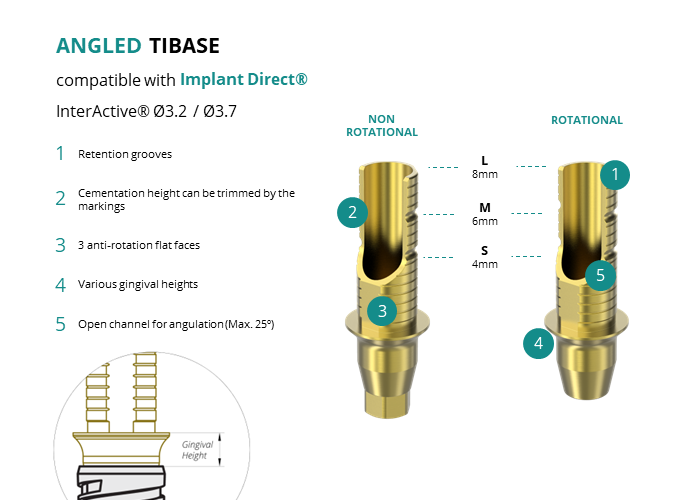Angled Titanium Base compatible with Implant Direct® InterActive® Ø3.2 / Ø3.7