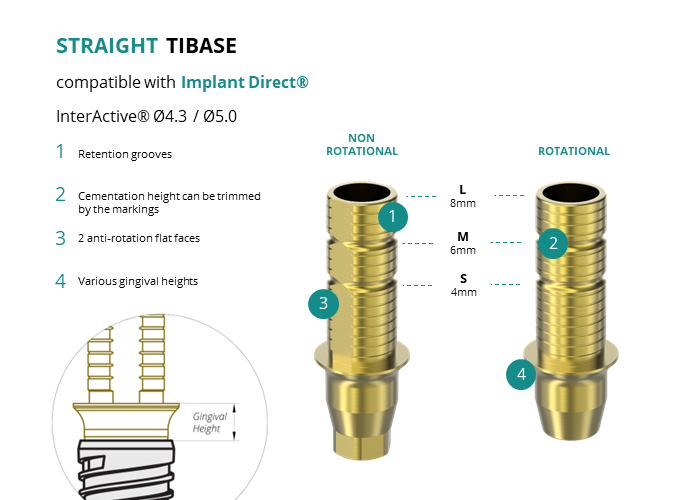 Titanium Straight Base compatible with Implant Direct® InterActive® Ø4.3 / Ø5.0
