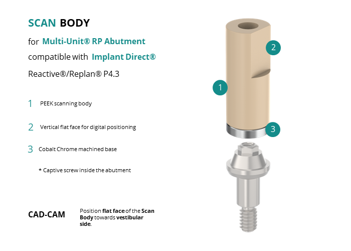 Scan Body for Multi-Unit® RP Abutment compatible with Implant Direct® Reactive®/Replan® P4.3