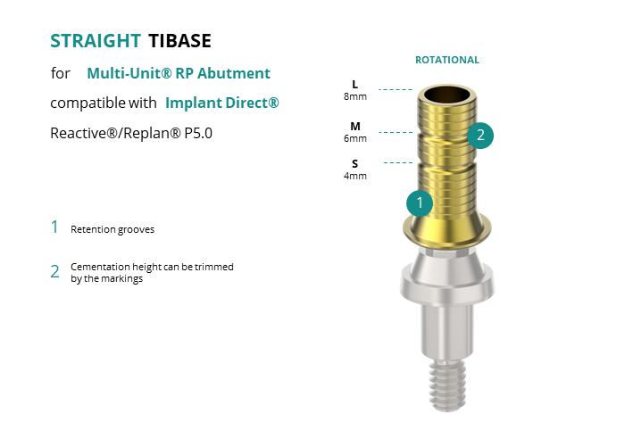 Titanium Straight Base for Multi-Unit® RP Abutment compatible with Implant Direct® Reactive®/Replan® P5.0
