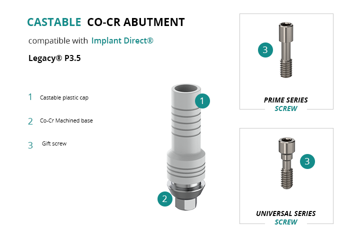 Castable Abutment with Co-Cr Base compatible with Implant Direct® Legacy® P3.5