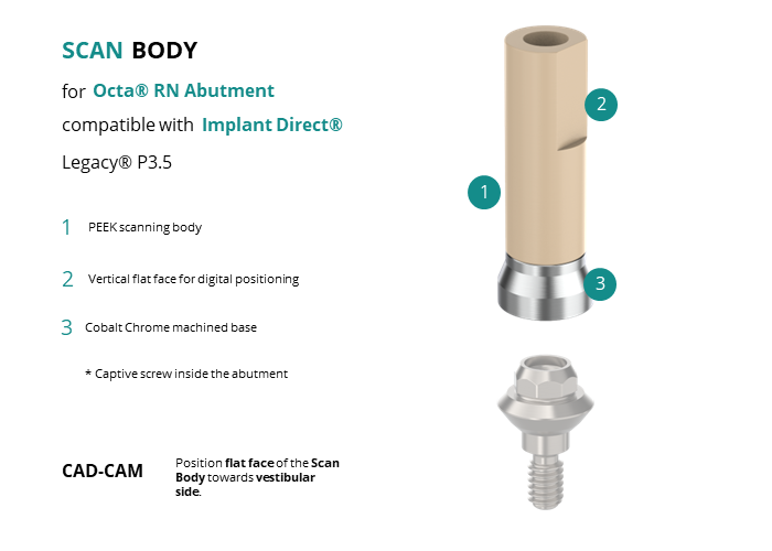 Scan Body for Octa® RN Abutment compatible with Implant Direct® Legacy® P3.5