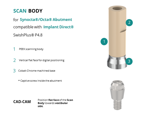 Scan Body for Synocta®/Octa® Abutment compatible with Implant Direct® SwishPlus® P4.8