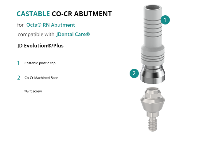 Castable Abutment with Co-Cr Base for Octa® RN Abutment compatible with JDental Care® JD Evolution®/Plus