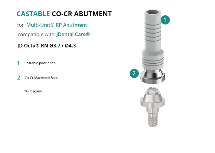 Castable Abutment with Co-Cr Base for Multi-Unit® RP Abutment compatible with JDental Care® JD Octa® RN Ø3.7 / Ø4.3