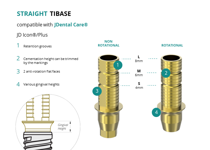 Titanium Straight Base compatible with JDental Care® JD Icon®/Plus