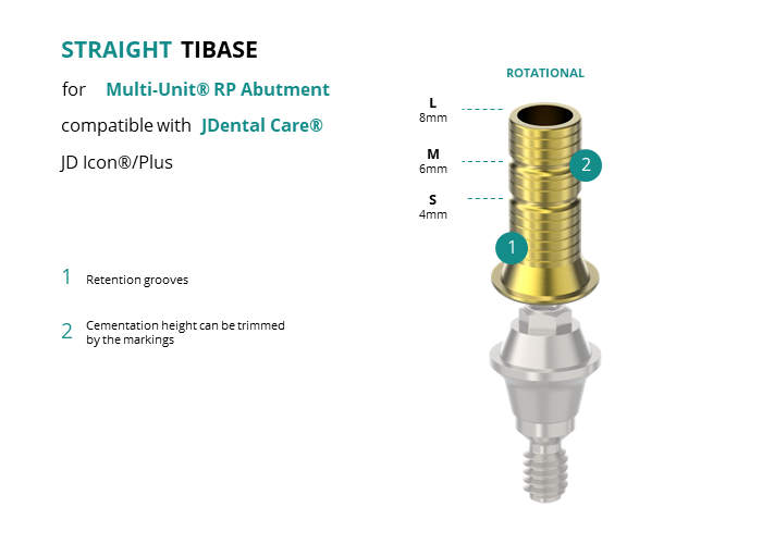 Titanium Straight Base for Multi-Unit® RP Abutment compatible with JDental Care® JD Icon®/Plus