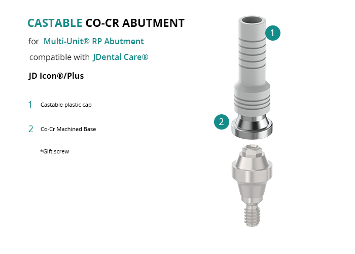 Castable Abutment with Co-Cr Base for Multi-Unit® RP Abutment compatible with JDental Care® JD Icon®/Plus