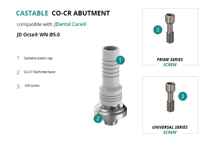 Castable Abutment with Co-Cr Base compatible with JDental Care® JD Octa® WN Ø5.0