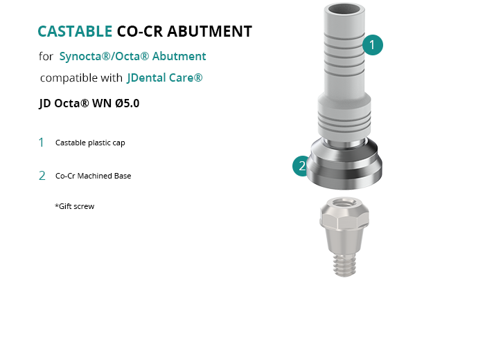 Castable Abutment with Co-Cr Base for Synocta®/Octa® Abutment compatible with JDental Care® JD Octa® WN Ø5.0