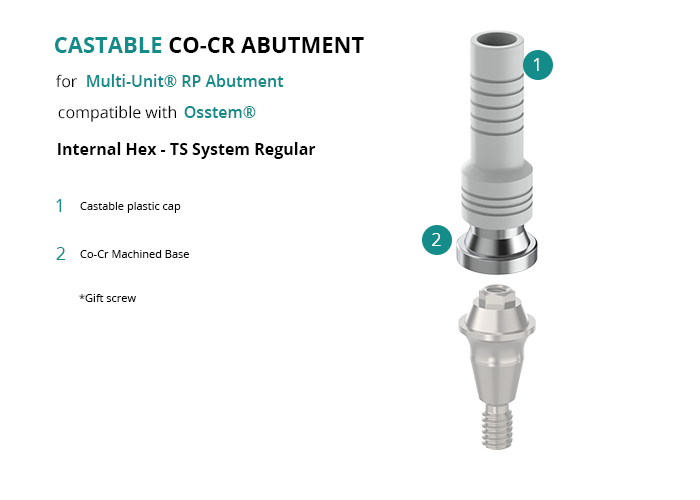 Castable Abutment with Co-Cr Base for Multi-Unit® RP Abutment compatible with Osstem® Internal Hex - TS System Regular