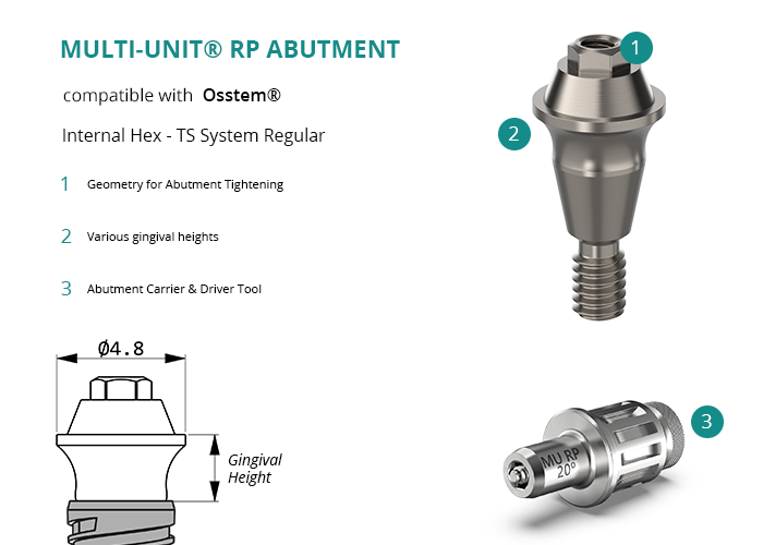 Multi-Unit® RP Abutment compatible with Osstem® Internal Hex - TS System Regular