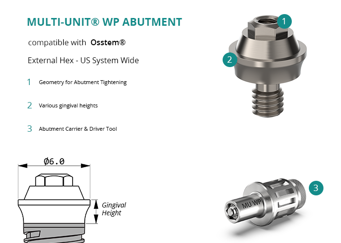Multi-Unit® WP Abutment compatible with Osstem® External Hex - US System Wide