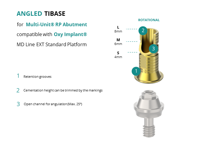 Angled Titanium Base for Multi-Unit® RP Abutment compatible with Oxy Implant® MD Line EXT Standard Platform