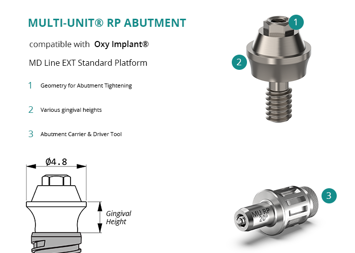 Multi-Unit® RP Abutment compatible with Oxy Implant® MD Line EXT Standard Platform