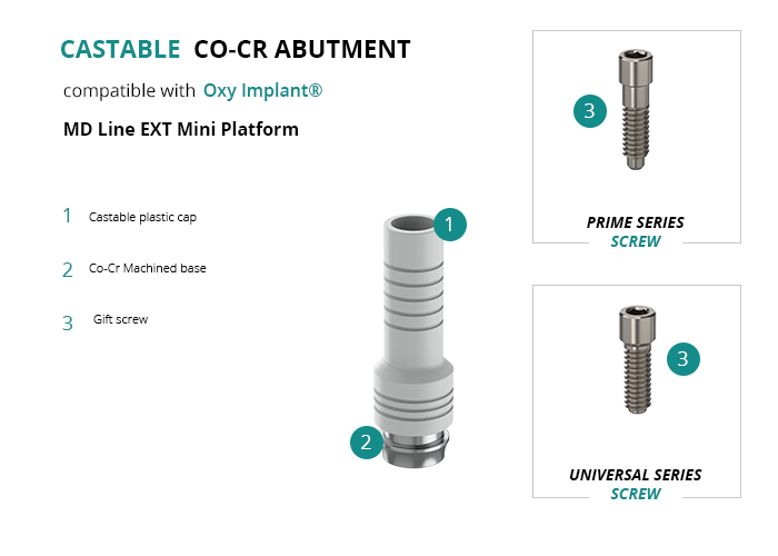 Castable Abutment with Co-Cr Base compatible with Oxy Implant® MD Line EXT Mini Platform