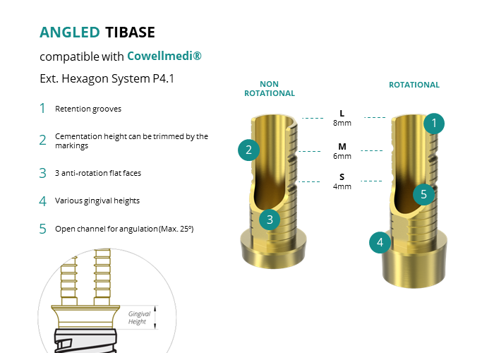 Angled Titanium Base compatible with Cowellmedi® Ext. Hexagon System P4.1