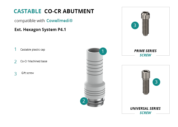 Castable Abutment with Co-Cr Base compatible with Cowellmedi® Ext. Hexagon System P4.1