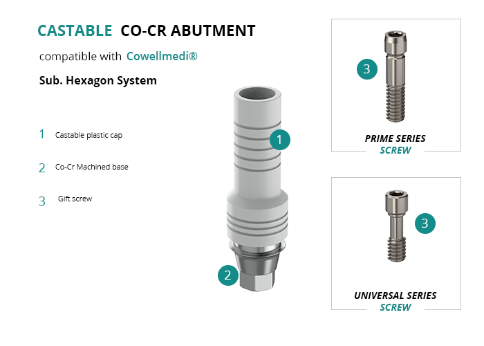 Castable Abutment with Co-Cr Base compatible with Cowellmedi® Sub. Hexagon System