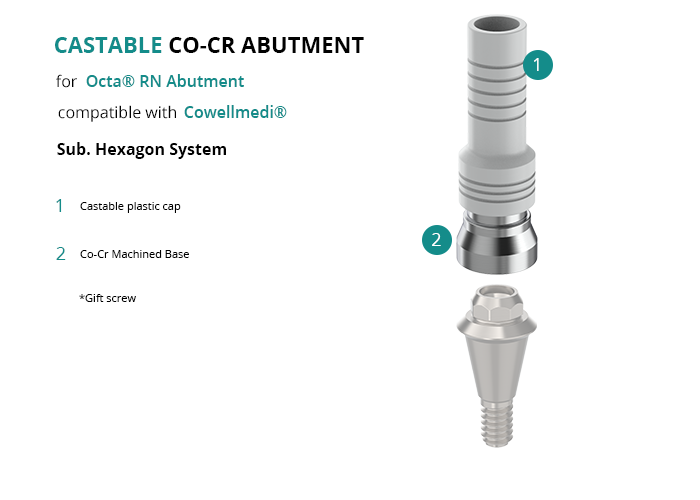 Castable Abutment with Co-Cr Base for Octa® RN Abutment compatible with Cowellmedi® Sub. Hexagon System