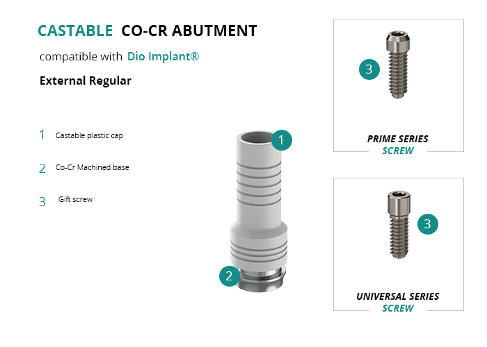 Castable Abutment with Co-Cr Base compatible with Dio Implant® External Regular