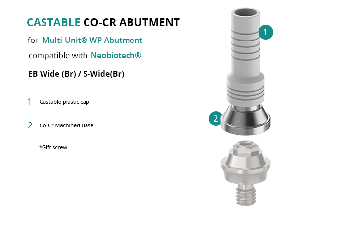 Castable Abutment with Co-Cr Base for Multi-Unit® WP Abutment compatible with Neobiotech® EB Wide (Br) / S-Wide(Br)