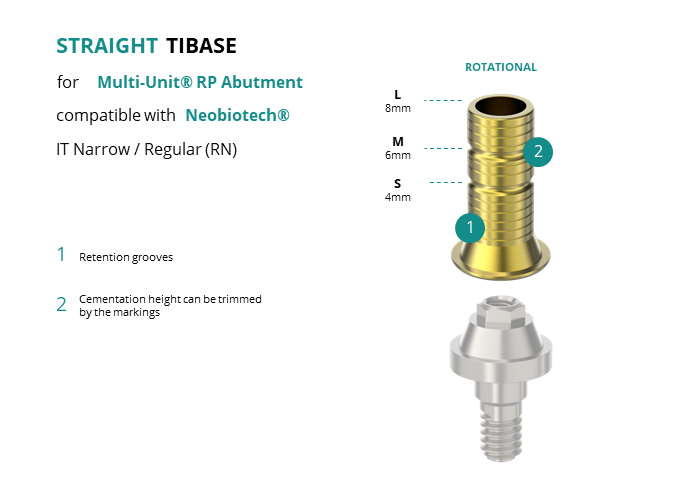 Titanium Straight Base for Multi-Unit® RP Abutment compatible with Neobiotech® IT Narrow / Regular (RN)