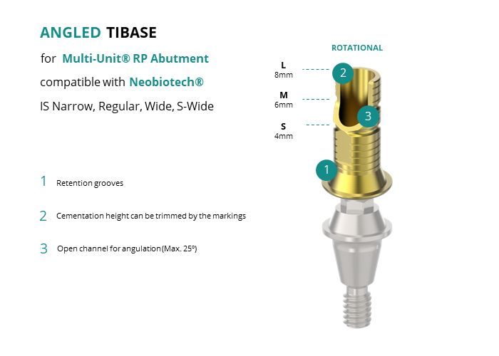Angled Titanium Base for Multi-Unit® RP Abutment compatible with Neobiotech® IS Narrow, Regular, Wide, S-Wide