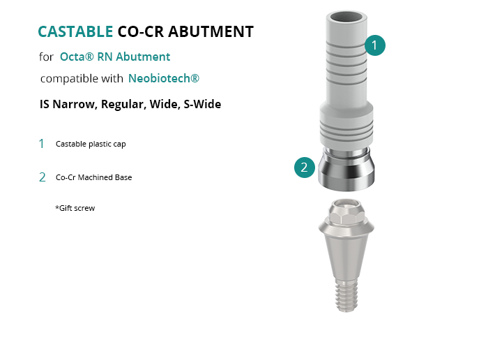 Castable Abutment with Co-Cr Base for Octa® RN Abutment compatible with Neobiotech® IS Narrow, Regular, Wide, S-Wide