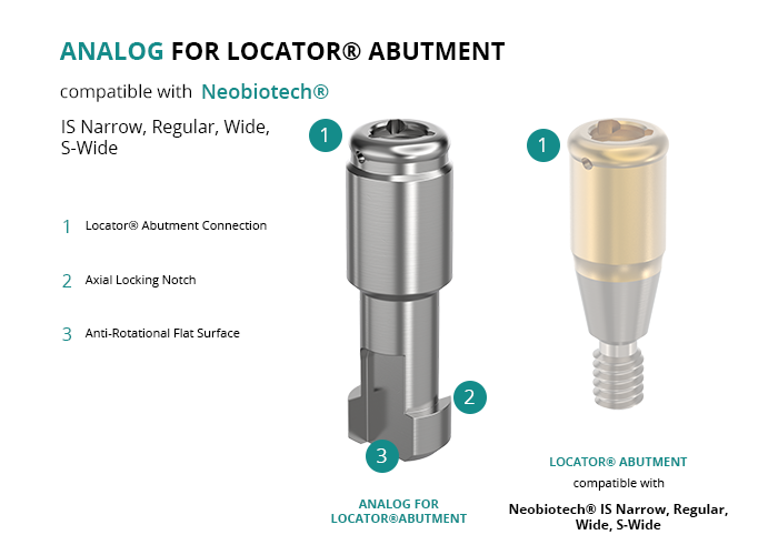 Analog for Locator® Abutment Compatible with Neobiotech® IS Narrow, Regular, Wide, S-Wide