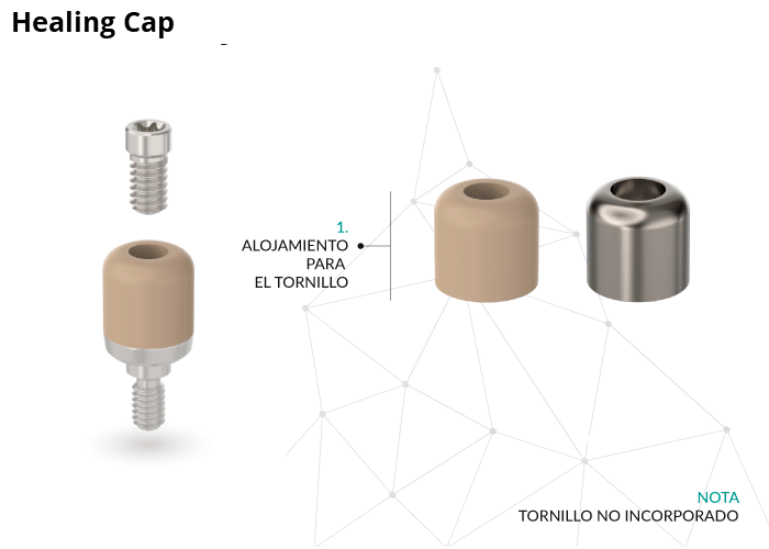 The diameter of the healing cap has a measurement adjusted to the implant or transepithelial on which it is placed.