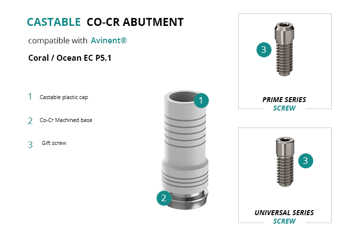 Castable Abutment with Co-Cr Base compatible with Avinent® Coral / Ocean EC P5.1