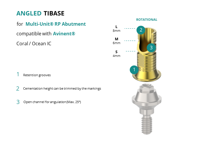 Angled Titanium Base for Multi-Unit® RP Abutment compatible with Avinent® Coral / Ocean IC