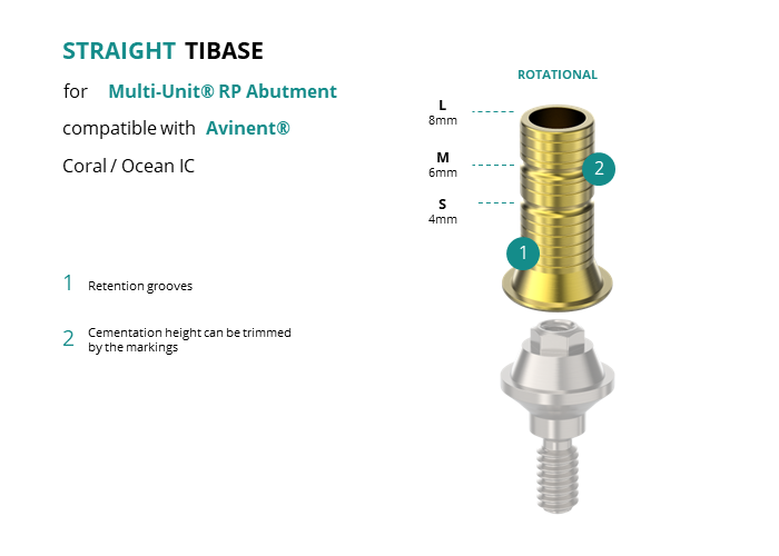 Titanium Straight Base for Multi-Unit® RP Abutment compatible with Avinent® Coral / Ocean IC