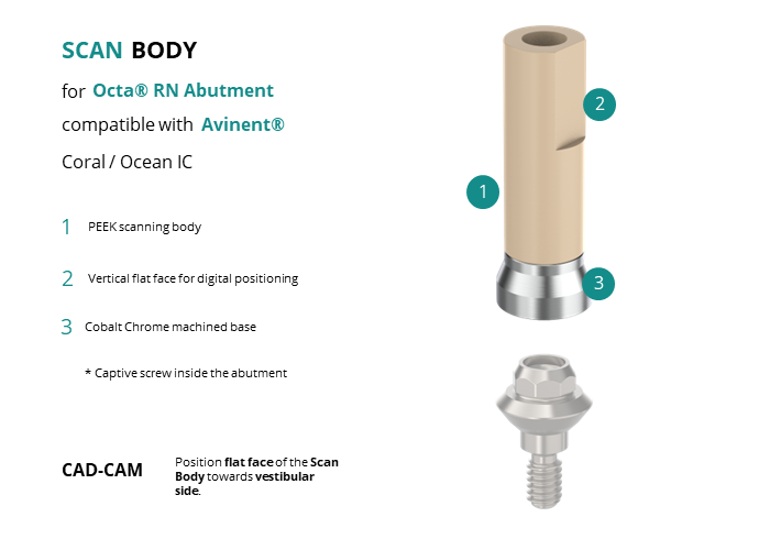 Scan Body for Octa® RN Abutment compatible with Avinent® Coral / Ocean IC