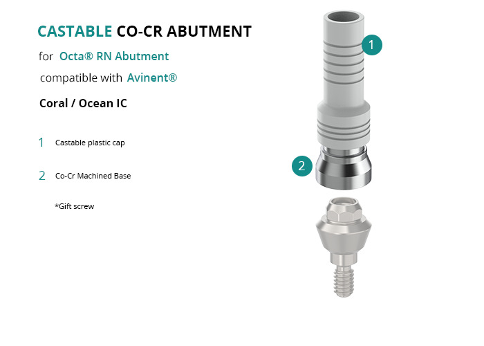 Castable Abutment with Co-Cr Base for Octa® RN Abutment compatible with Avinent® Coral / Ocean IC