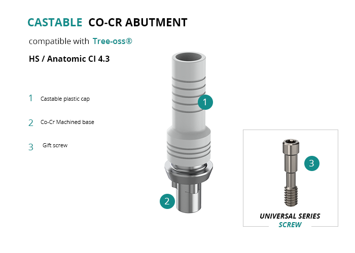 Castable Abutment with Co-Cr Base compatible with Tree-oss® HS / Anatomic CI 4.3