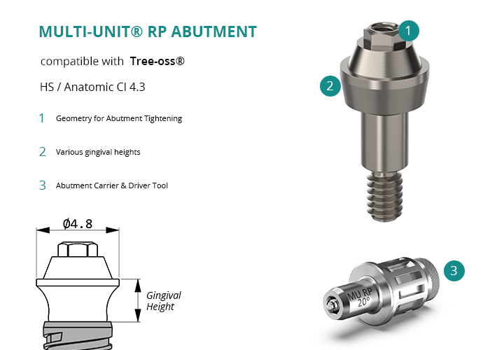 Multi-Unit® RP Abutment compatible with Tree-oss® HS / Anatomic CI 4.3