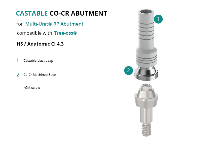 Castable Abutment with Co-Cr Base for Multi-Unit® RP Abutment compatible with Tree-oss® HS / Anatomic CI 4.3