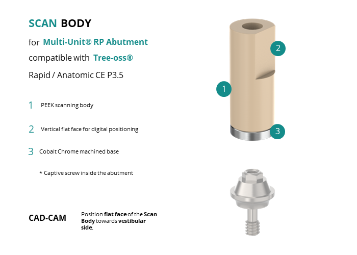 Scan Body for Multi-Unit® RP Abutment compatible with Tree-oss® Rapid / Anatomic CE P3.5