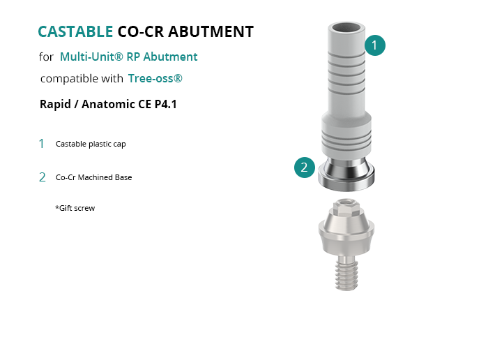 Castable Abutment with Co-Cr Base for Multi-Unit® RP Abutment compatible with Tree-oss® Rapid / Anatomic CE P4.1
