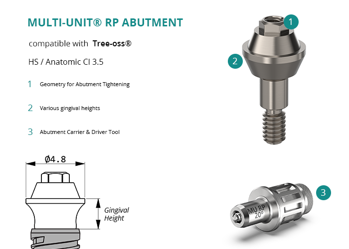 Multi-Unit® RP Abutment compatible with Tree-oss® HS / Anatomic CI 3.5