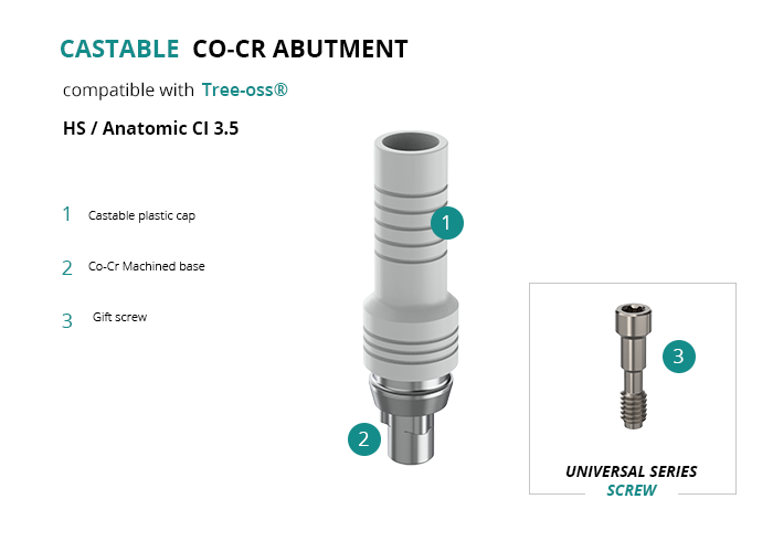 Castable Abutment with Co-Cr Base compatible with Tree-oss® HS / Anatomic CI 3.5