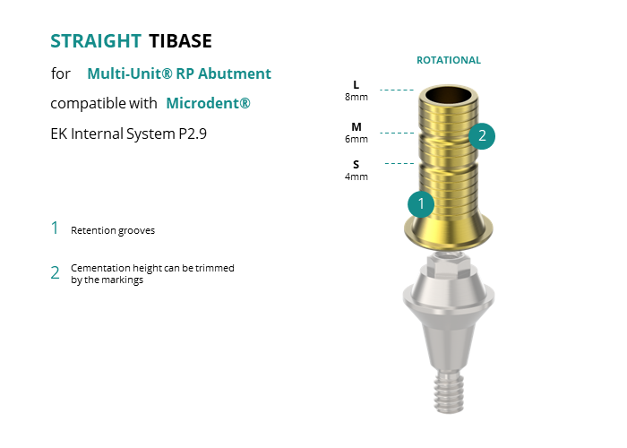 Titanium Straight Base for Multi-Unit® RP Abutment compatible with Microdent® EK Internal System P2.9