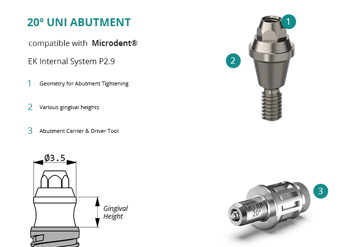 20º Uni Abutment compatible with Microdent® EK Internal System P2.9