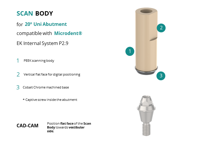 Scan Body for 20� Uni Abutment compatible with Microdent® EK Internal System P2.9