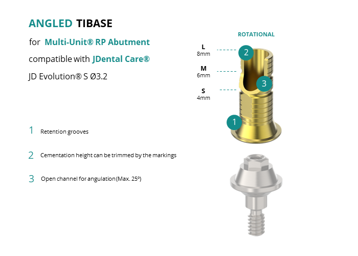Angled Titanium Base for Multi-Unit® RP Abutment compatible with JDental Care® JD Evolution® S Ø3.2