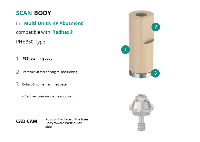 Scan Body for Multi-Unit® RP Abutment compatible with Radhex® PHE 350 Type