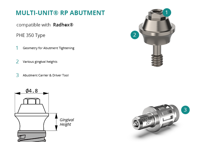 Multi-Unit® RP Abutment compatible with Radhex® PHE 350 Type