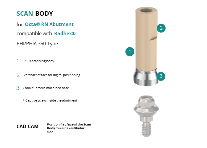 Scan Body for Octa® RN Abutment compatible with Radhex® PHI/PHIA 350 Type
